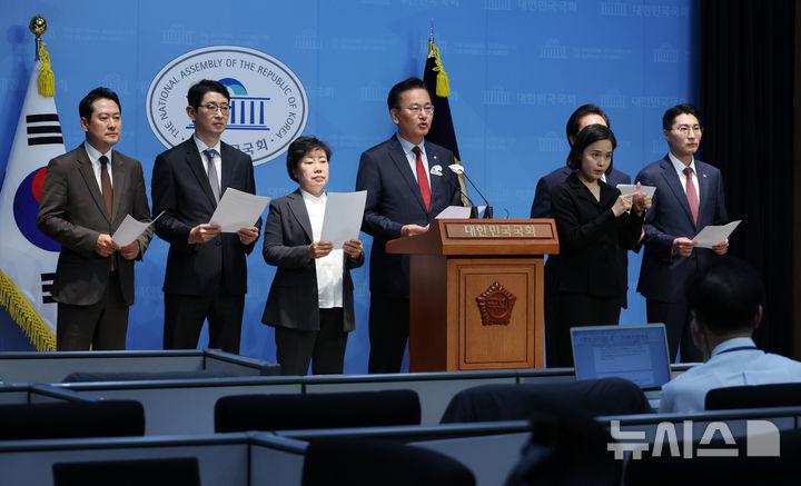 이들은 "명 씨 관련 의혹을 명백하게 밝혀야 한다는 것은 누구보다 국민의힘이 바라는 일"이라며 "하지만 이런 특정 의도를 가진 특검법으로는 그 어떤 사실도 밝힐 수 없고 정쟁만 유발할 뿐"이라고 강조했다.