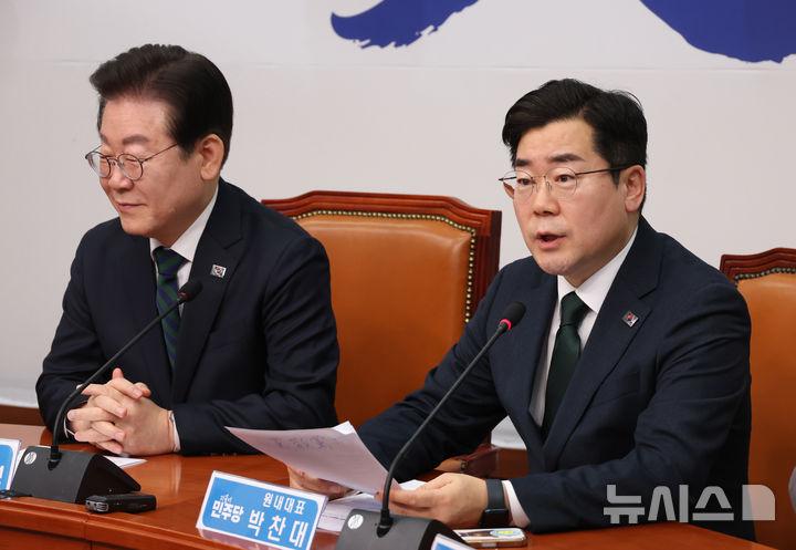 박찬대 민주당 원내대표는 12일 서울 여의도 국회 본관에서 열린 최고위원회의에서 "명태균 특검은 12·3 내란 사태의 동기를 밝히는 데 매우 중요한 법안"이라며 "야당이 박수를 쳐주지 않아 국회에 총을 들고 쳐들어갔다는 헛소리보다 윤석열 자신이 저질렀던 온갖 불법 행위와 부정을 감추기 위해 영구 집권을 시도했다는 것이 더 설득력있고 합리적인 분석"이라고 말했다.
