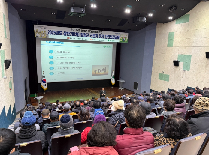 함평군은 13일 “2025년 제1차 정기 안전보건교육이 전날 오후 함평엑스포공원 주제영상관에서 실시됐다”고 밝혔다.