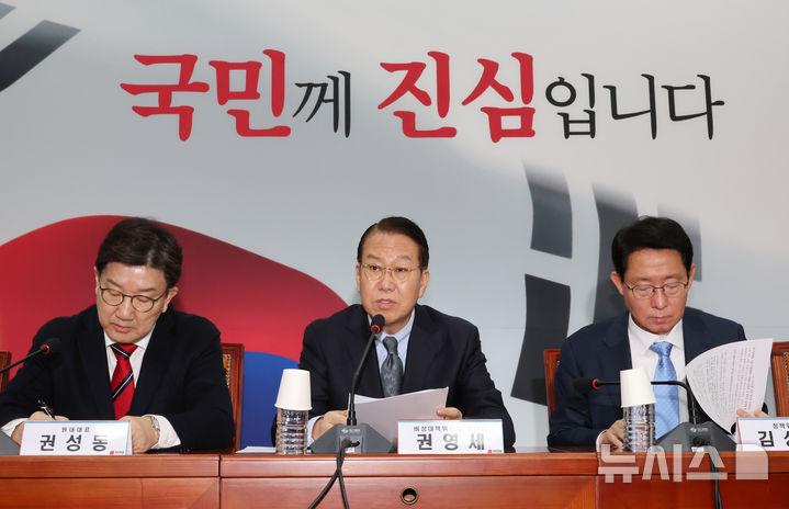 권영세 비상대책위원장은 이날 국회에서 열린 비대위 회의에서 "비상계엄 선포와 그 진행 과정에 있었던 일들을 부정하는 게 아니다"라며 "진실과 거짓이 혼재 돼 있는데 헌재가 무슨 초능력으로 참과 거짓을 가려내겠다는 것인지 그 기준조차 명확하지 않다는 것을 지적하는 것"이라고 말했다.