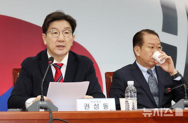 권 원내대표는 "(이 대표가) 개헌 논의는 하지 말자고 하면서 정작 자신의 개헌 구상을 이야기하는 것은 이재명 대표 전매특허인 이율배반 자기모순"이라고 비난했다.
