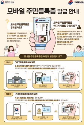 발급 대상은 17세 이상 주민등록증을 발급받은 주민으로 IC 주민등록증과 QR코드 방식 중 선택할 수 있다. 신청자는 본인 명의의 휴대전화에 ‘대한민국 모바일 신분증’앱을 설치해야 한다.