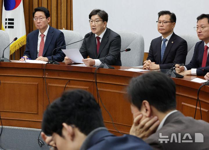권성동 국민의힘 원내대표는 이날 오전 국회에서 열린 원내대책회의에서 "자기 맘대로 예산안을 삭감해 일방 처리를 해놓고, 얼마 지나지 않아 30조원 추경을 말하더니, 그 사이에 5조원이 늘어 35조원이 됐다"고 전했다.