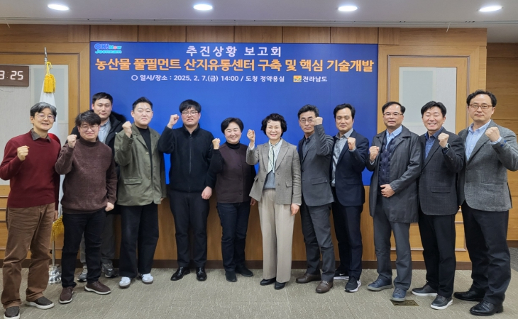 전남도는 지난 7일 도청 정약용실에서 농산물 풀필먼트 구축 및 핵심 기술개발 추진상황 중간보고회를 열고 연구사업 진행 상황 공유와 향후 상용화를 위한 추진 방안을 논의했다.