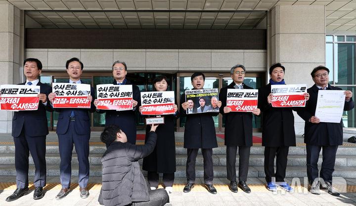 진상조사단은 이진동 차장 면담에 앞서 기자회견을 열고 정치 브로커 명태균 씨를 고리로 한 윤 대통령과 김 여사의 공천개입 의혹, 이른바 '명태균 게이트'에 대해 철저한 수사를 검찰에 촉구했다.