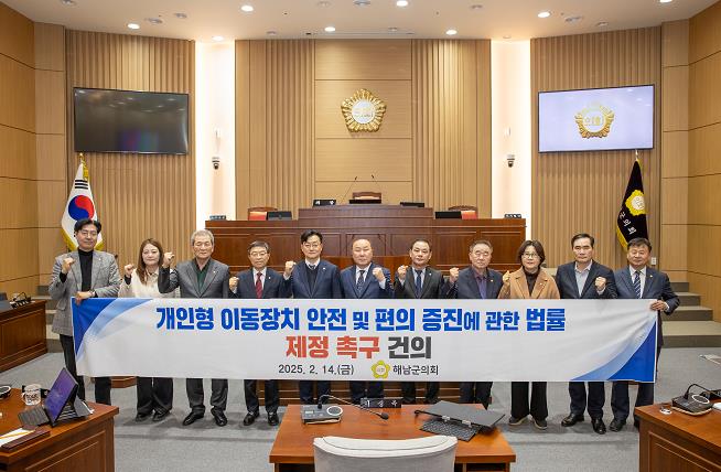 한편, 해남군수가 제출한 '해남군 개인형 이동장치 이용안전 증진 조례안'이 2월 10일 군 홈페이지에 입법예고 중이다.