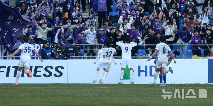 이동경이 오른쪽 측면에서 올린 크로스를 유강현이 다이빙 슈팅으로 마무리했다.