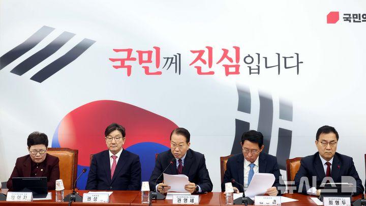 권영세 비상대책위원장은 이날 오전 국회에서 열린 비상대책위원회의에서 "지금까지 헌법재판소의 탄핵심판 과정에서 어느 것도 분명하게 사실로 드러난 게 없다"며 "더불어민주당의 기획탄핵, 사기탄핵이라는 주장이 나온다"고 말했다.