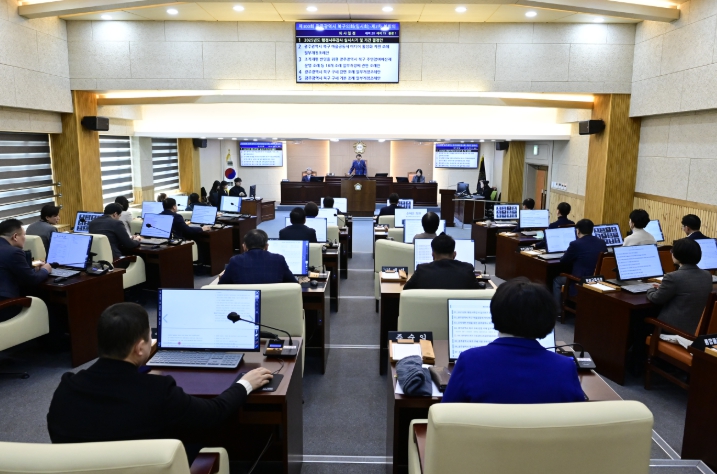 이번 임시회에서는 5분 자유발언, 신년 업무계획 보고 청취 및 일반안건 심사가 진행됐으며, 일반안건 10건 중 9건은 원안 가결, 1건은 수정 가결했다.