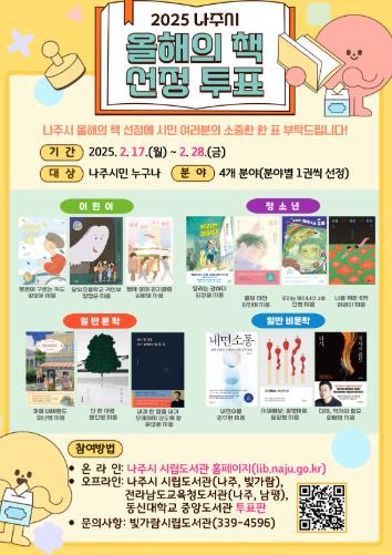 조사 결과 각 부문별로 가장 많은 표를 얻은 도서 1권씩 총 4권이 ‘나주시 올해의 책’으로 최종 선정된다.