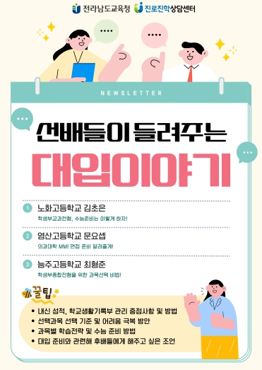 이번 ‘선배가 들려주는 대입이야기’도 이와 맥을 같이 하는 것으로, 다양한 유형의 학교에서 공부한 학생들의 합격 성공 사례를 공유함으로써 예비 수험생들이 스스로 대입 경쟁력을 키우도록 독려한다는 취지이다.