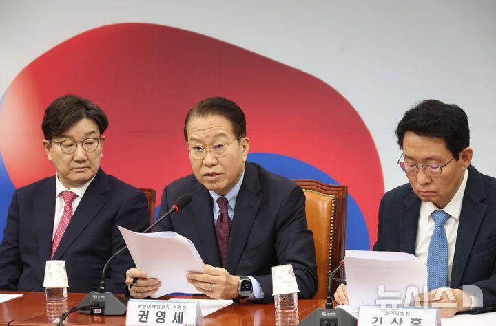 권영세 국민의힘 비상대책위원장은 17일 서울 중구 한국프레스센터에서 열린 관훈클럽 초청 토론회에서 '윤 대통령이 정치적 해법으로 본인의 거취를 밝히는 것은 어떻겠느냐'는 질문에 "하야가 법률적으로 가능하냐 문제와 별개로 하야할 경우 지금 모든 문제를 잠재울 수 있느냐 하면 그렇게 생각하지 않는다"고 답했다.