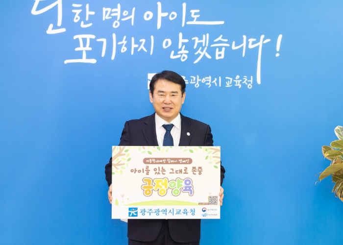 이정선 교육감은 정신 전남대학교병원장의 추천을 받아 캠페인에 참여했으며, 이날 아동 학대 예방과 긍정 양육문화 확산을 위한 메시지를 영상으로 촬영해 개인 SNS에 게시했다.