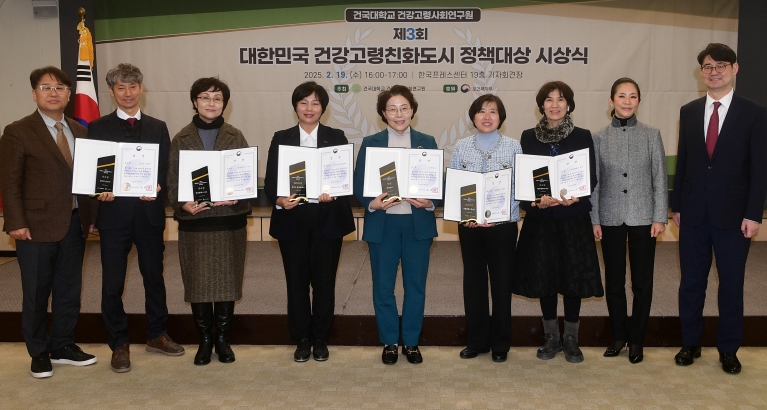 건강고령친화도시 정책대상은 초고령사회에 대비해 세계보건기구(WHO)에서 제시한 ▲사회적 존중과 통합 ▲지역사회 돌봄 ▲의사소통과 정보 ▲주거환경 안정성 등 8개 영역을 심사, 지방자치단체의 우수한 고령 친화 정책과 성과를 평가하는 상이다.