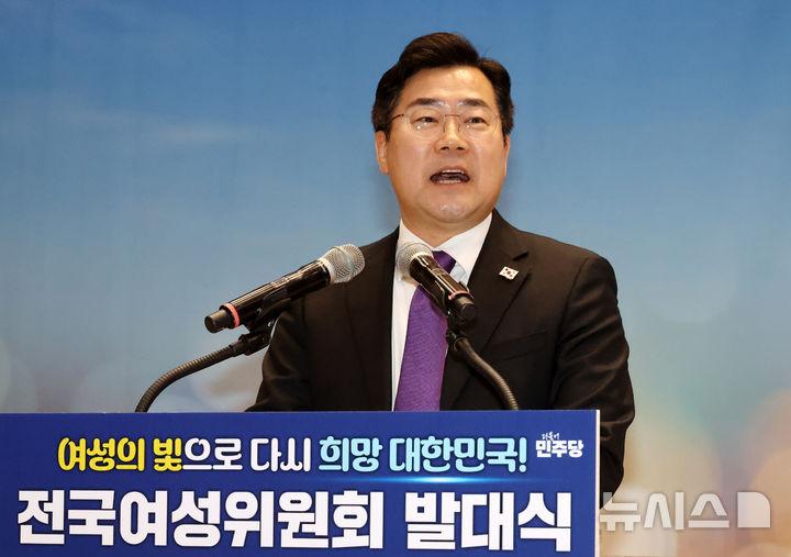 박찬대 원내대표는 이날 서울 여의도 국회 의원회관에서 열린 '민주당 2025 전국여성위원회 발대식'에서 "12·3 계엄이 터지고 나서 모두가 혼비백산할 그 시점에 우리 모두 국회와 대한민국을 지키기 위해 국회로 모였고, 비상계엄을 해제한 다음에는 새벽마다 국회의 문을 밤새 지키는 여성분들을 봤다. 여성들의 결연한 대한민국을 지키겠다는 의지를 보면서 정말 감동의 눈물을 흘릴 수밖에 없었다"고 했다.