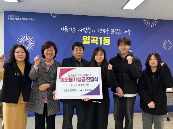 후원금은 지난해 월곡중학교 학생자치회에서 진행한 어려운 이웃 돕기 벼룩시장에서 따뜻한 마음을 모아 마련한 금액이다. 이들은 지난 2017년부터 꾸준하게 나눔활동을 이어왔다.