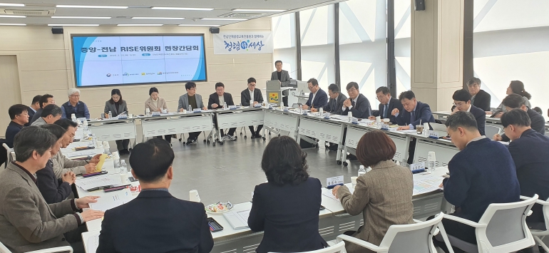 간담회에선 중앙 및 지역RISE위원회 위원, 교육부 관계자, 전남인재평생교육진흥원장, 한국연구재단 관계자 등 40여 명이 참석한 가운데 전남형 RISE사업의 발전방안을 논의했다.