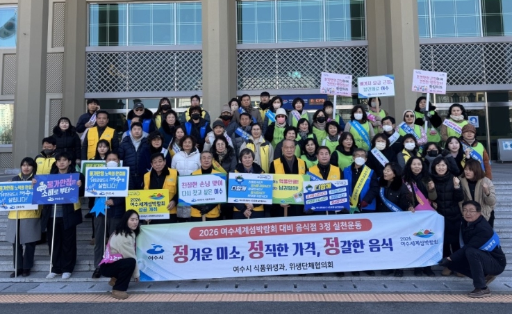 시 관계자는 “2026여수세계섬박람회 성공 개최를 위해 권역별 위생점검과 친절서비스 교육을 주기적으로 실시할 계획”이라며 “음식점 3정 실천 운동을 적극 전개해 친절한 외식·숙박업 분위기 조성에 힘쓰겠다”고 말했다.