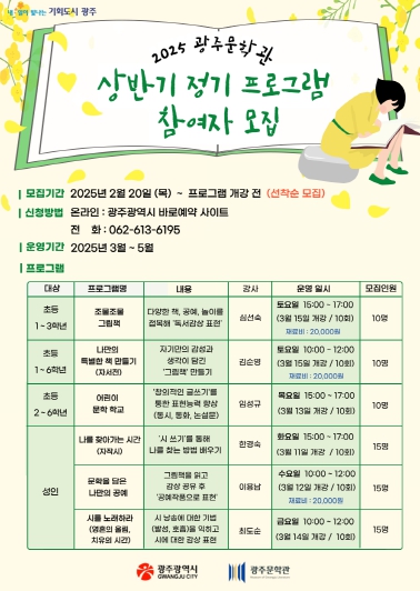 수강 신청은 광주시 누리집 바로예약이나 광주문학관(062-613-6195)으로 신청하면 된다. 자세한 내용은 광주문학관 누리집에서 확인할 수 있다.