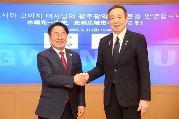 강기정 광주광역시장은 21일 시청 비즈니스룸에서 광주를 방문한 미즈시마 고이치 주한일본대사와 만나 양국의 경제‧산업‧문화 교류협력 활성화 방안에 대해 논의했다.