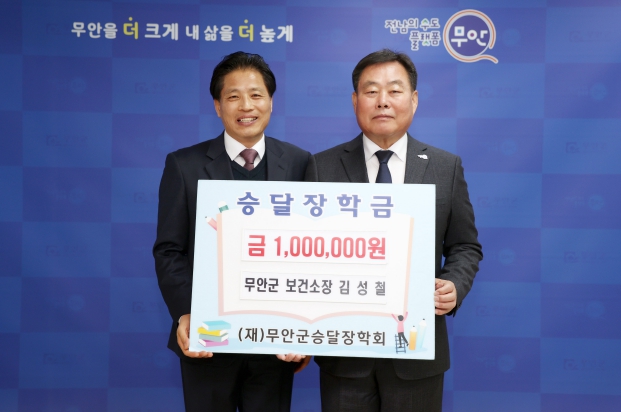 김산 무안군수는 “군민들의 건강과 복지 증진뿐만 아니라 지역인재 양성에 꾸준히 관심을 가지고 장학금을 기탁해 주셔서 감사드린다”며 “공직자가 솔선수범하는 모습은 군민들의 귀감이 될 것“이라고 전했다.