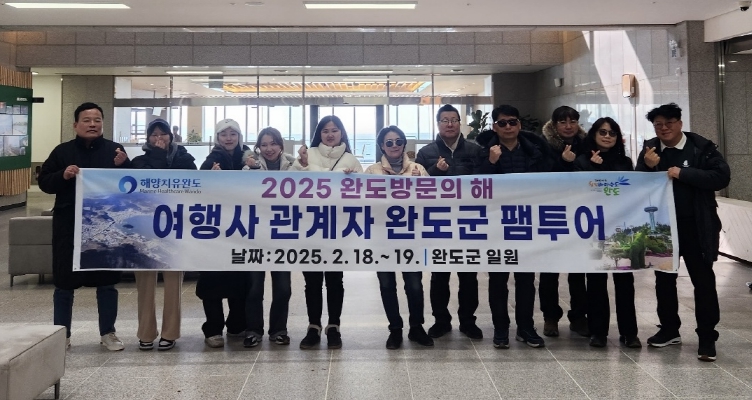 한편 완도군은 ‘2025 완도 방문의 해’를 맞아 단체 관광객을 유치하는 여행사를 대상으로 관내 음식점, 숙박업소, 해양치유센터 등을 이용할 경우 지원 조건 충족 여부에 따라 인센티브를 지원하고 있다.