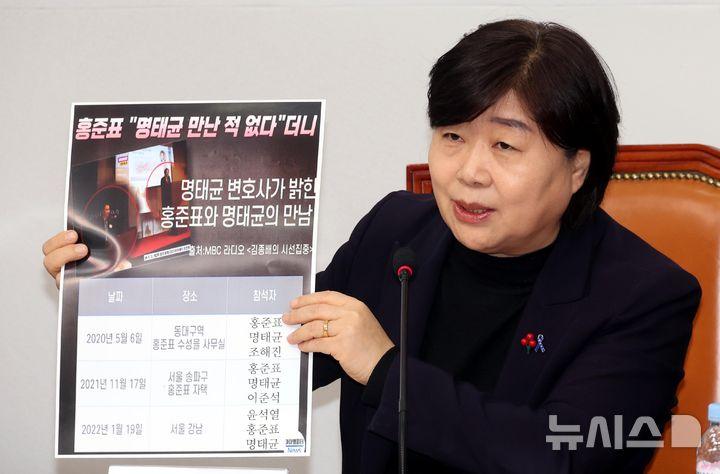 그는 "홍 시장이 지난 2020년 5월, 2021년 11월에 명 씨를 각각 동대구역과 서울 송파구 홍 시장 자택에서 만났다고 한다. 또 2022년 1월 19일 서울 강남 모처에서는 명 씨와 홍 시장, 윤석열 대통령이 만났다고 한다"며 "이 자리에서 홍 시장이 윤석열 당시 대통령 후보에게 최재형 감사원장을 종로에 공천해달라고 했는데 끝내 공천됐다. 이 내용을 폭로한다"고 했다.