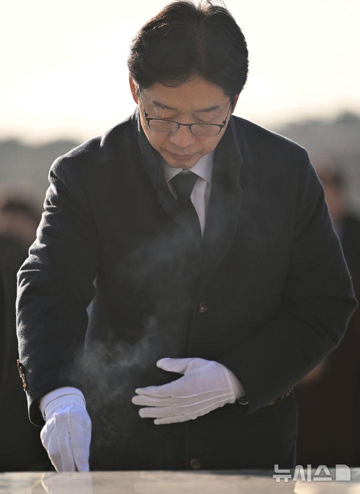 김 전 지사는 이날 5·18민주묘지 참배 과정에서 시민군 대변인 고(故) 윤상원 열사와 한강 작가의 소설 '소년이 온다'의 주인공 고 문재학 열사의 묘소를 찾았다. 비슷한 시간 민주묘지를 방문한 국민의힘 김상욱 의원과 안부인사를 주고받기도 했다.