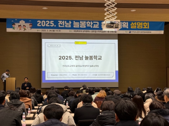 김대중 교육감은 “늘봄학교는 학생과 학부모의 요구를 반영한 돌봄·교육 지원 체계”라며 “이번 설명회를 통해 학교 현장이 새 학기 운영을 철저히 준비할 수 있도록 적극 지원하겠다”고 말했다.