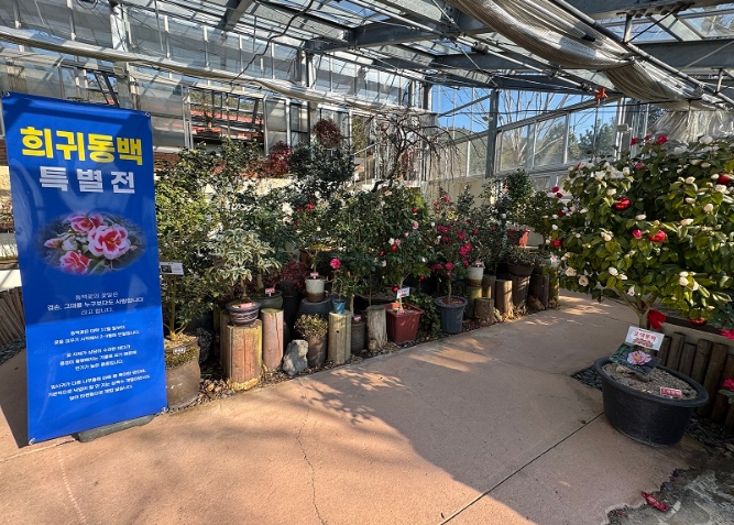 이번 전시회는 컵동백, 무늬동백, 애기동백 등 다양한 품종의 동백꽃이 전시되어 동백의 화려한 아름다움과 순백색의 백매화와 붉은빛의 홍매화로 매화의 순수미를 가까이서 느낄 수 있다.