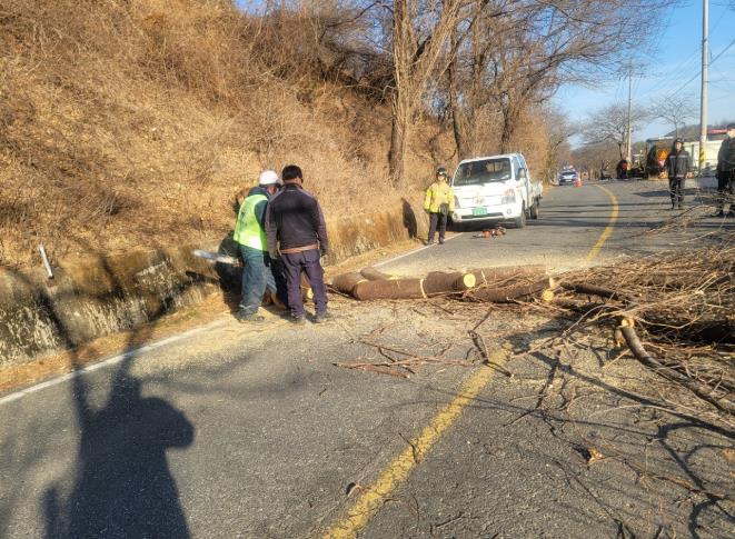 가로수는 도로 일부를 직선으로 가로막아 차량 통행을 막고 있었다.