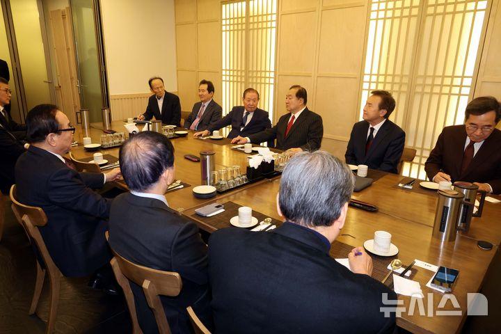 정대철 대한민국 헌정회장은 26일 서울 여의도에서 정치 원로들로 구성된 '나라걱정원로모임' 오찬 간담회를 가졌다.