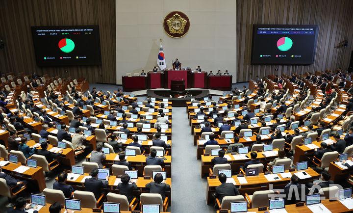 국회는 이날 오후 본회의를 열고 재석 의원 274명 가운데 찬성 182명, 반대 91명, 기권 1명으로 명태균 특검법을 가결했다.