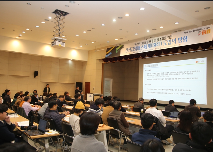 이날 포럼에는 광주시, 광주에코바이크, 광주연구원 등 대중교통 관련기관과 시민 등 80여 명이 참석했으며, ▲광주시 BRT 운영 계획 발표 ▲성공적인 BRT 운영을 위한 타지역 사례 분석 및 정책 보완 방안 등의 주제 발표 후 BRT의 실효성을 높이기 위한 다양한 방안에 대해 열띈 논의가 펼쳐졌다.