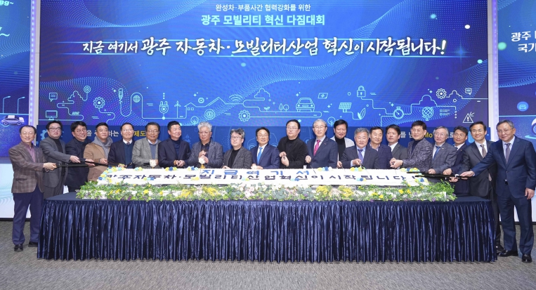 최근 미국 정부의 관세정책으로 자동차 수출과 산업이 위축될 것이라는 전망에 광주지역 완성차와 부품사, 유관기관이 똘똘 뭉쳐 지역 자동차산업의 경쟁력을 강화해 모빌리티 생산 중심도시로 한단계 더욱 키우자는 결의이다. 또 광주 미래차국가산단이 국가전략사업으로 선정돼 본격화할 산단 조성을 축하했다.
