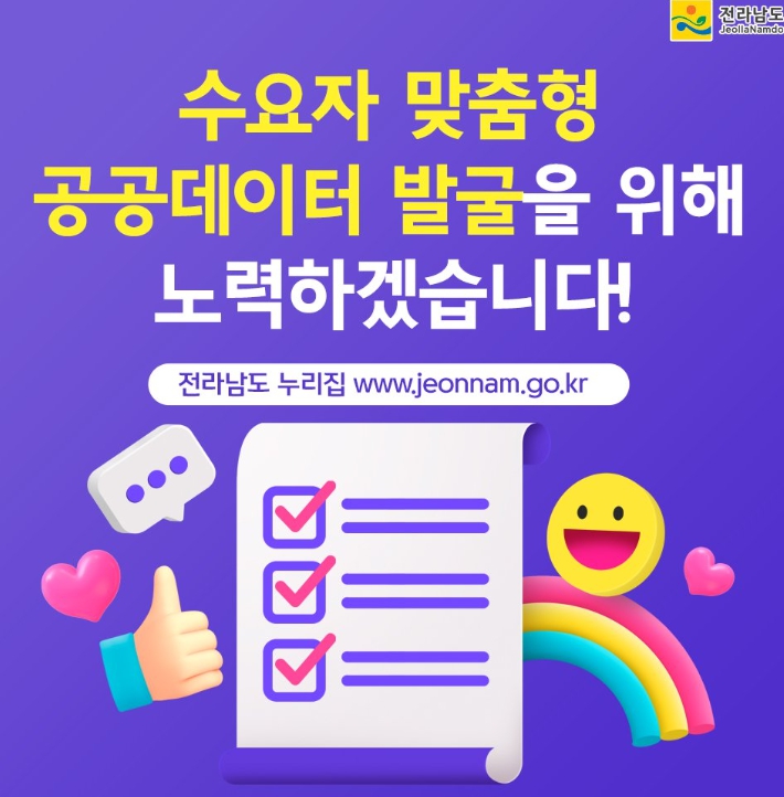 전남도는 이번 설문조사를 통해 얻은 데이터를 분석, 공공데이터 개방 정책과 서비스 개선에 적극 반영할 계획이다. 도민이 일상생활에서 공공데이터를 보다 쉽고 유용하게 활용하는데 중점을 두고 추진한다.