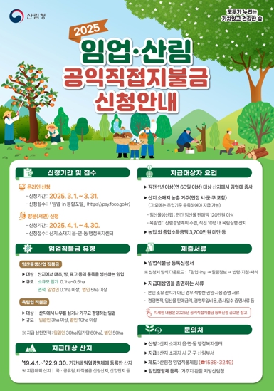 자세한 사항은 각 시군 산림부서와 읍면동 행정복지센터에서 확인할 수 있으며, 산림청 임업직불금 상담센터에서도 안내받을 수 있다.