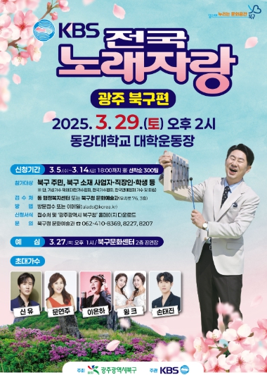 4일 북구에 따르면 ‘KBS 전국노래자랑 광주 북구편’이 오는 29일 오후 2시부터 동강대학교 운동장에서 열린다.