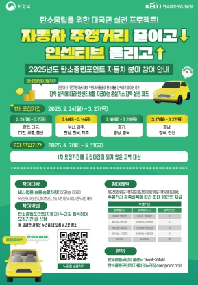 나병춘 기후대기정책과장은 “온실가스 배출로 인한 지구 온난화가 심화하고 있는 가운데 유류비를 절감하고 온실가스도 감축하면서 동시에 현금까지 받을 수 있는 자동차 탄소중립포인트제에 많은 관심과 참여를 바란다”고 말했다.