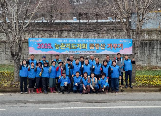한국농촌지도자광양시연합회는 해당 사업에 적극적으로 참여하며 전라남도 ‘아름다운 마을 가꾸기’ 운동과 광양시 역점사업인 ‘시가지 아름다운 꽃길 조성사업’에 힘을 보태고 있으며, 이날 또한 회원 30명이 광양읍 사곡리에 모여 경지정리, 봄꽃(팬지 등) 심기 등의 활동을 펼쳤다.