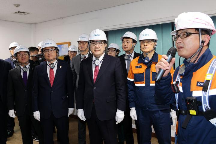권성동 원내대표는 이날 경북 포항시 포스코 포항제철소를 찾아가 철강산업 지원을 위한 간담회를 열고 "국가전략·원천기술 세액공제 확대와 국내 철강 공급망 강화를 위한 원산지 규정 확대 등 각종 지원을 개선할 '철강산업 지원법안'을 조속히 발의하는 것을 검토하겠다"고 밝혔다.