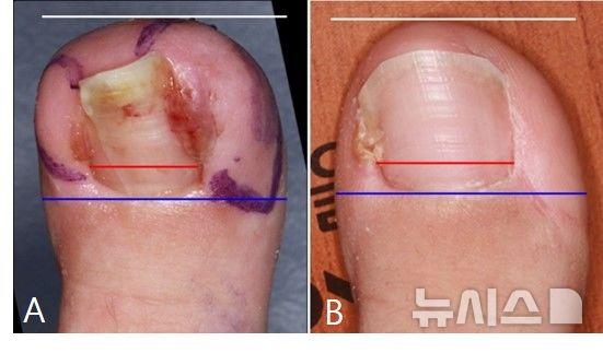 연구팀은 연부조직 절제술의 효과를 검증하기 위해 난치성 내성발톱 환자 9명을 대상으로 수술 후 발톱 폭의 개선 정도와 상처 회복기간, 부작용 등을 분석했다. 수술 전후 발톱 폭의 개선 정도는 연구팀에서 새롭게 개발한 이미지 분석 방식을 이용했다.