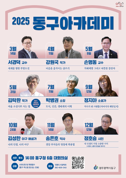 지난 2007년 시작해 올해로 19년째를 맞은 동구 아카데미는 광주 동구를 대표하는 평생학습 교양 강좌로, 매년 다양한 분야의 전문가를 초청해 주민들에게 폭넓은 배움의 기회를 제공하고 있다.