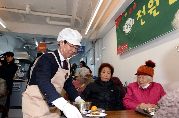 광산구 천원한끼 식당은 저렴한 가격(취약계층 1,000원, 취약계층 외 3,000원)에 든든한 점심 한 끼를 제공하고, 지역 어르신에게는 일자리를 제공하는 사업이다.