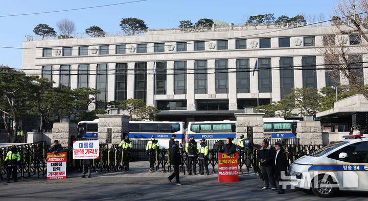 헌재는 3·1절 연휴를 제외하면 이날까지 평일 동안 7차례 평의를 진행하게 된다. 재판관 의견을 모으는데 속도를 내면서 조만간 선고기일을 지정할 것으로 예상된다.