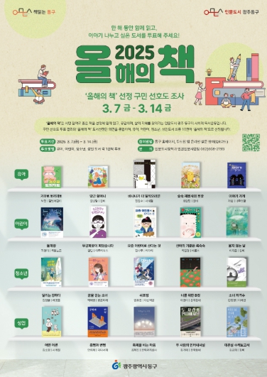 투표는 동구 누리집 및 모바일 앱 두드림과 구립도서관 책정원에서 온라인으로 참여할 수 있다. 부문별 후보 도서 중 가족, 이웃, 친구와 함께 읽고 싶은 책을 부문별 1권씩 선택하면 된다.