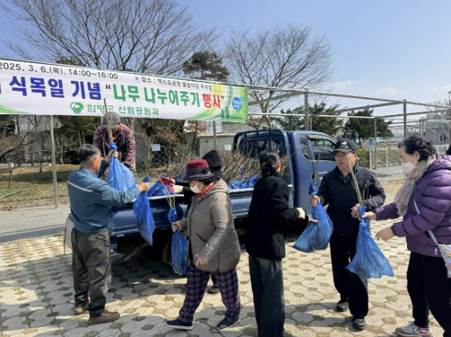 행사에서는 군민에게 1인당 감나무 1본, 라일락 1본 등 총 2본의 나무를 무료로 제공했으며 생활공간 주변에 직접 식재할 수 있도록 식재 및 관리 방법을 함께 안내했다.