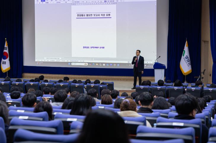 이어 기획보고서 작성법으로 4가지 기본기를 설명하며 영암 공직자들의 이해를 더하고, △효과적 정책 전달 논리 구성법 △보고서 작성 실습 및 사례분석 등도 소개했다.