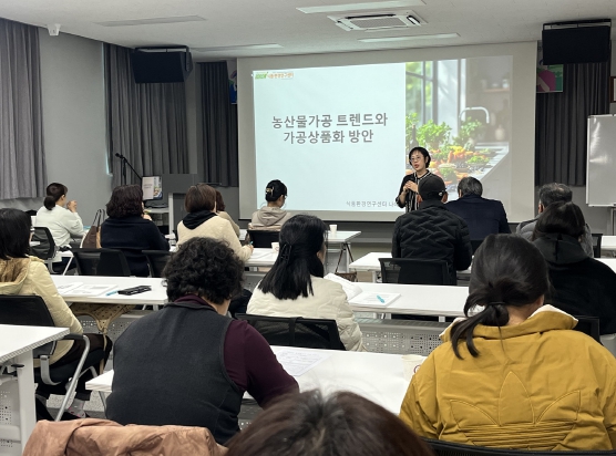 농식품가공교육은 지역 농산물 가공 역량을 강화하고 농업인의 안정적인 소득 창출을 지원하기 위해 운영되는 강좌다. 교육 대상은 농산물 가공과 창업을 희망하는 농업인이며, 대상자가 창업 역량을 키울 수 있도록 실무 중심의 강의와 실습이 마련됐다.