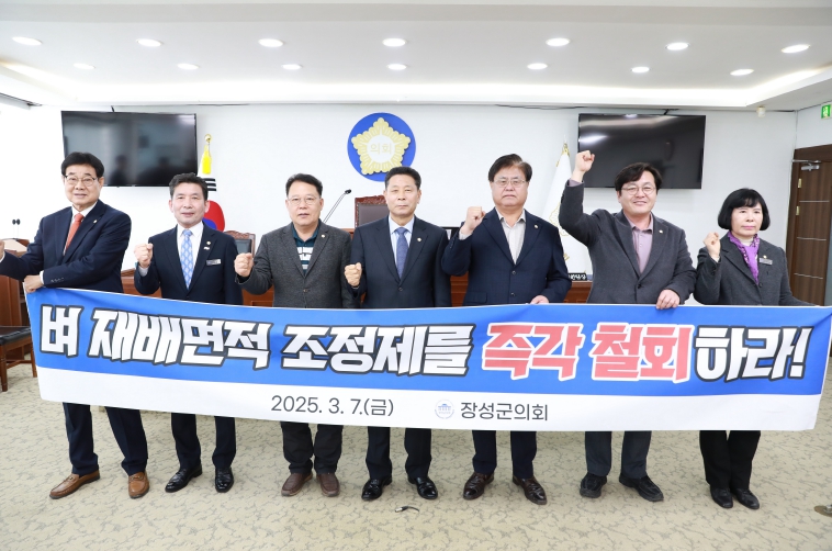 이에 장성군의회 의원들은 일방적인 벼 재배면적 조정제를 즉각 철회할 것과 농민의 생존권을 보장하는 쌀가격 안정 대책을 마련할 것을 정부에 강력히 촉구했다.